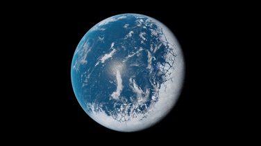 TRAPPIST-1f is the fifth closest planet to the star, and is well inside the habitable zone, orbiting in a near-circular orbit at a distance of only 5.55 million km (0.037 AU). It is approximately 68% the mass of the Earth and very slightly larger in radius. Its density is only 60% of Earth’s, suggesting it contains more interior water/ice or other light elements, similar to Jupiter’s moon Io. It receives only 38% of the solar irradiance that Earth does, giving it a mean surface temperature of 219 K (-54°C). Many regions could support surface water, conditions favorable to Earth-like life, if its lower gravity is sufficient to hold an atmosphere.